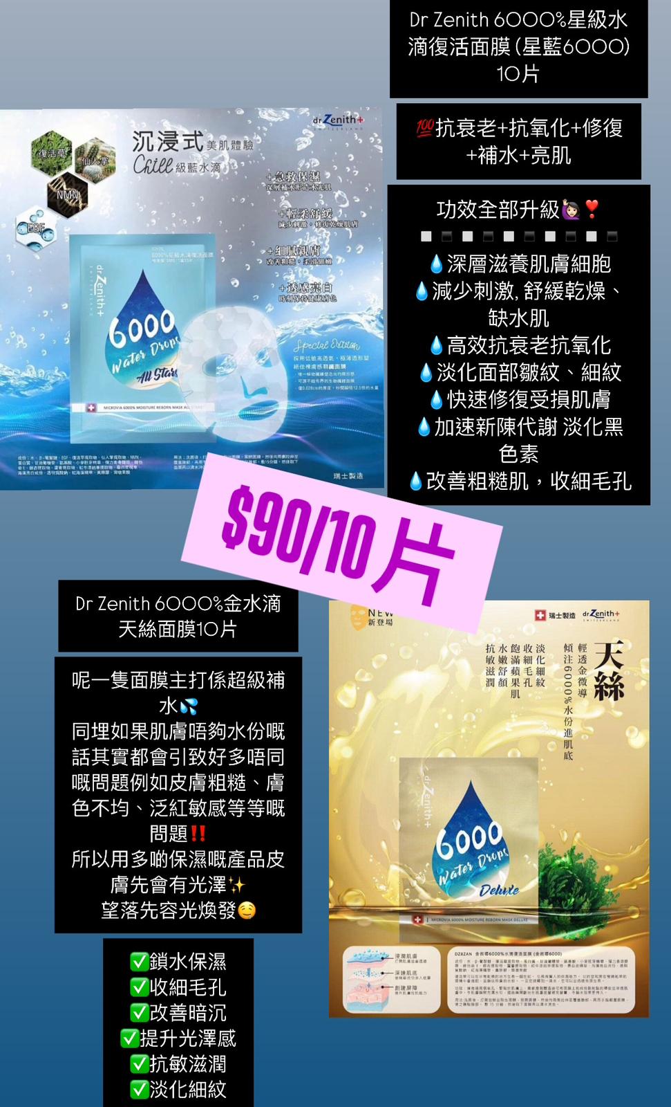 (美容展價)Dr Zenith 6000%金水滴天絲面膜&Dr Zenith 6000%星級水滴復活面膜 (星藍6000)