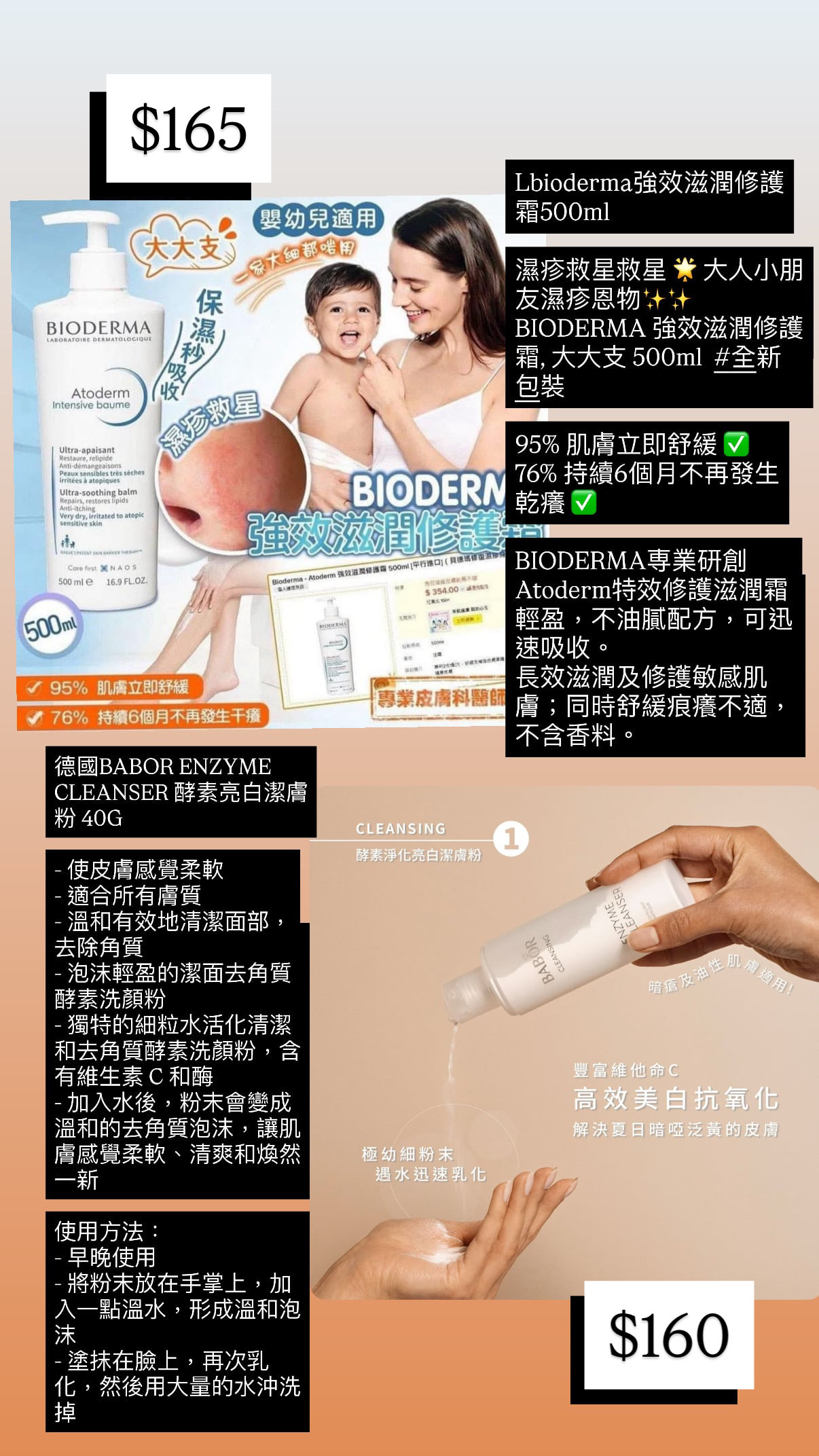 (聖誕節優惠價)babor酵素潔面粉/ bioderma強效滋潤修護霜500ml
