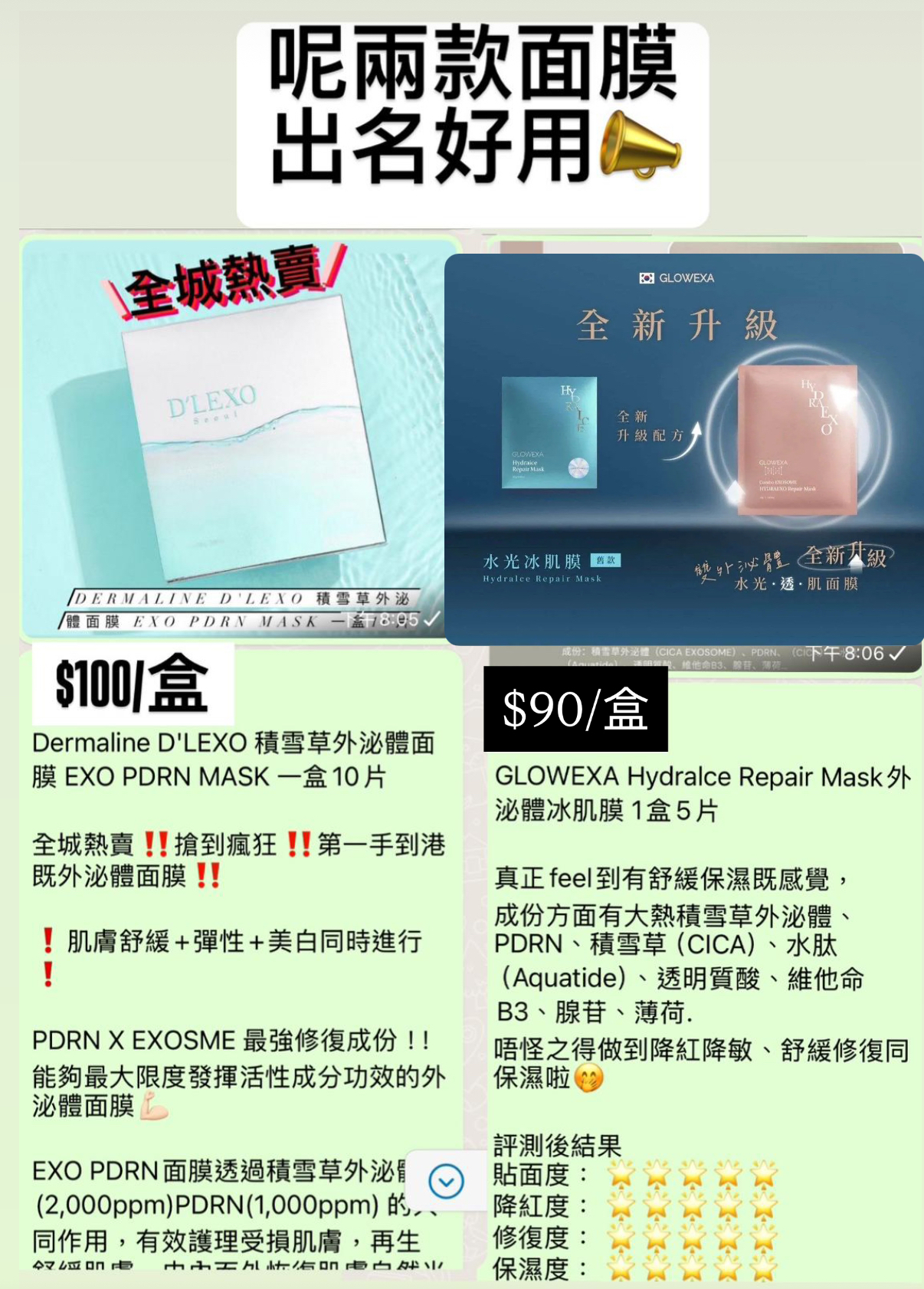 (聖誕節優惠價)glowexa & dermaline 2款積雪草外泌體面膜