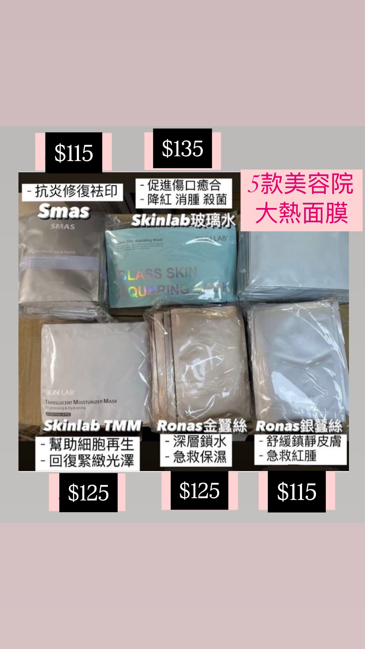 (聖誕節優惠價)ronas & smas & skinlab美容院蠶絲面膜系列**珠光白已停產**