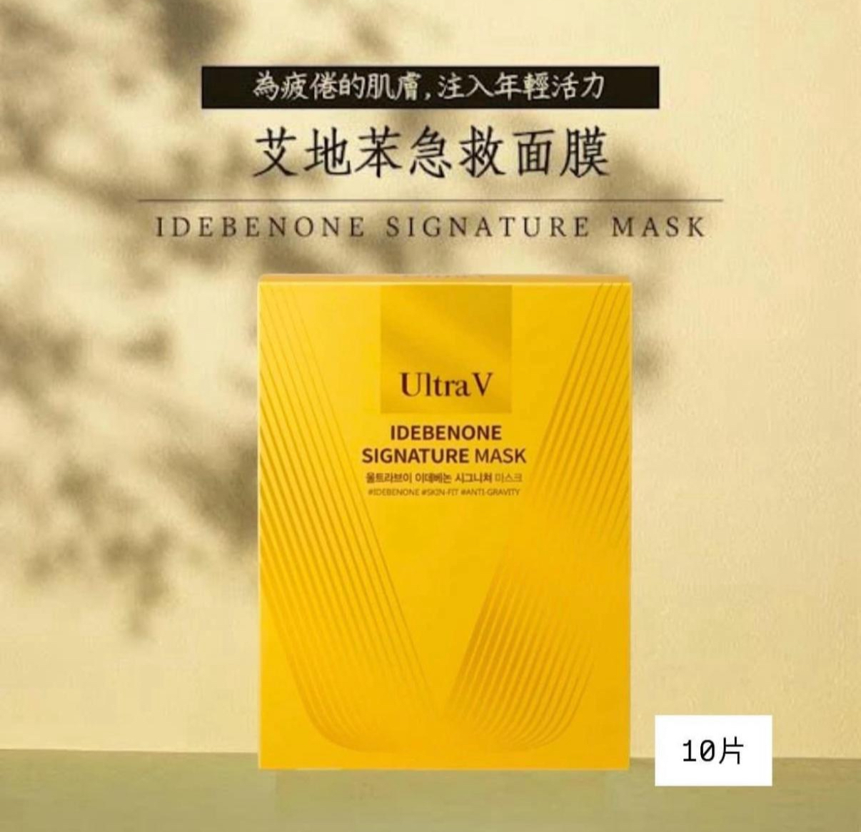 Ultra V艾地苯黃金面膜(1盒10片) 【艾地苯成份】- 極高抗氧化功效 此面膜是一種活化肌膚,抗衰老的面膜 含有高濃度艾地苯抗衰美白補濕精華,只需15分鐘,極速滲入肌底,極速急救衰老皮膚 更多詳情 主要成分: 艾地苯:強效抗氧化劑,有助於防止過早衰老,減少皺紋 EGF:含有細胞生長因子,恢復和恢復受損皮膚 透明質酸:有助於滋潤和抗衰老,滋潤肌膚 膠原蛋白:令肌膚豐滿,光滑,有彈性,緊緻,防止皺紋出現。 幫助皮膚迅速恢復彈性 玫瑰精華:含有大量維他命C,強效抗氧化劑,可減少粉刺形成 水果提取物: 具有抗氧化作用,令細胞有抗衰老作用 功效: 出色的水分供應,增加皮膚彈性 抗衰老,預防皺紋形成 天然提亮美白肌膚 滋養和恢復肌膚幼嫩